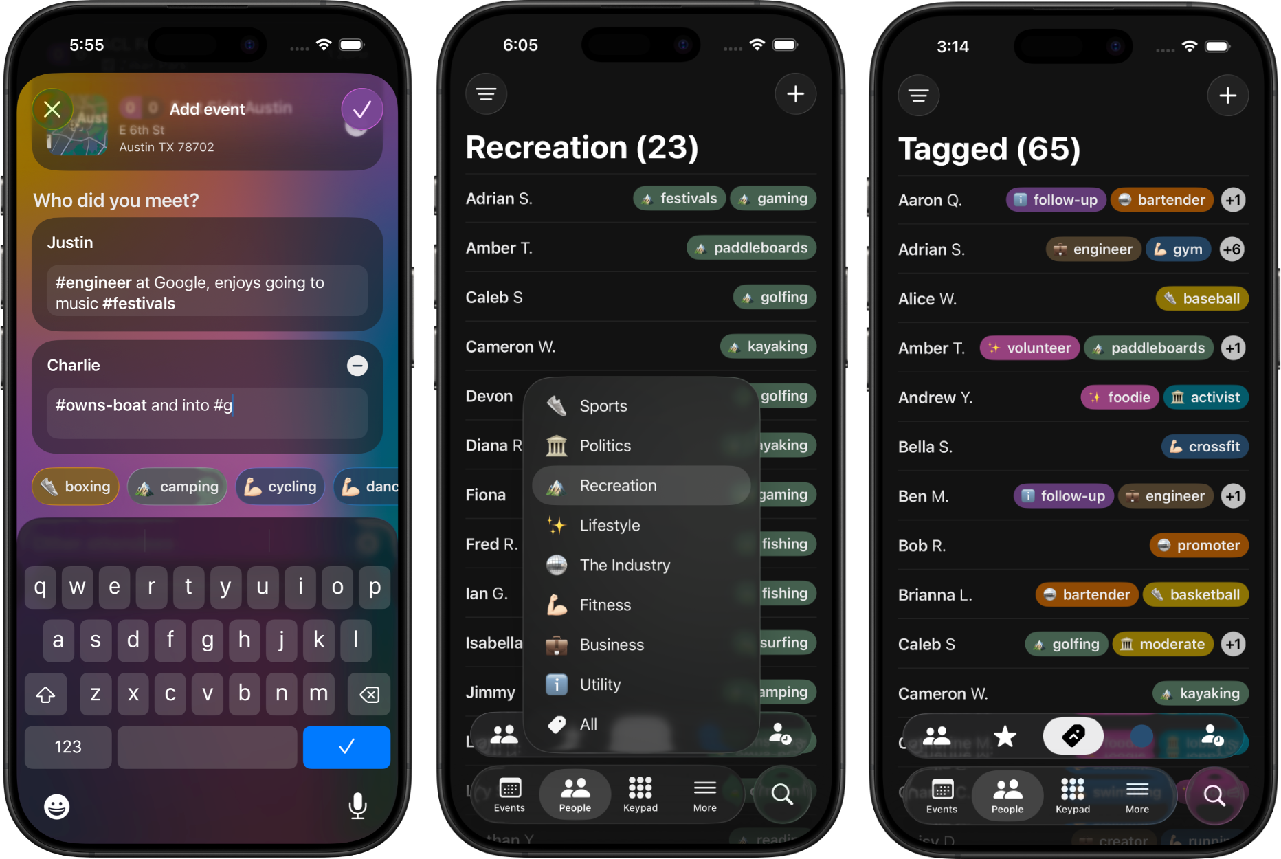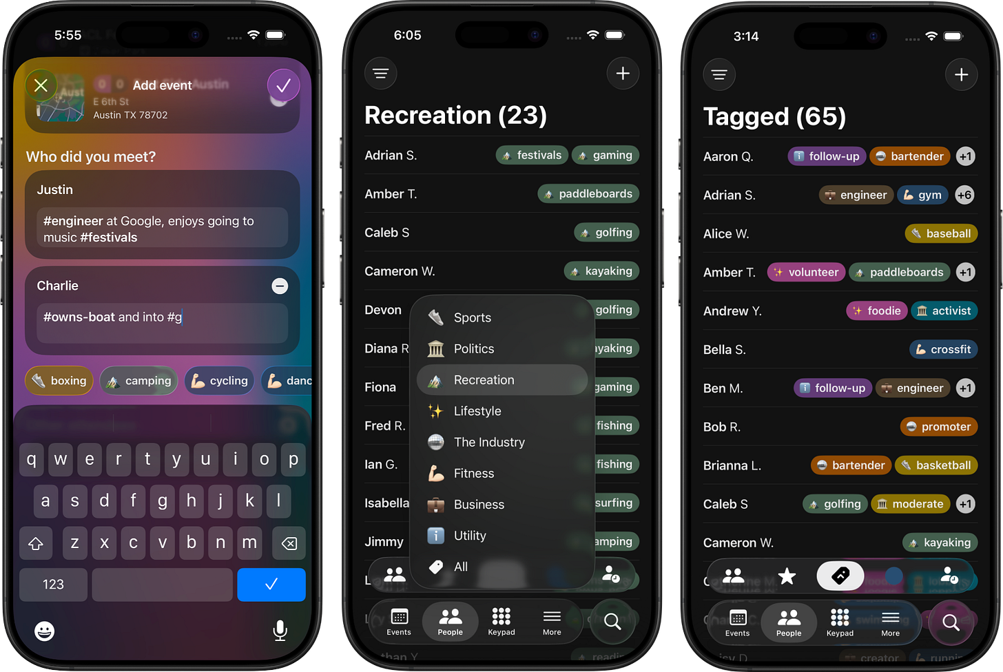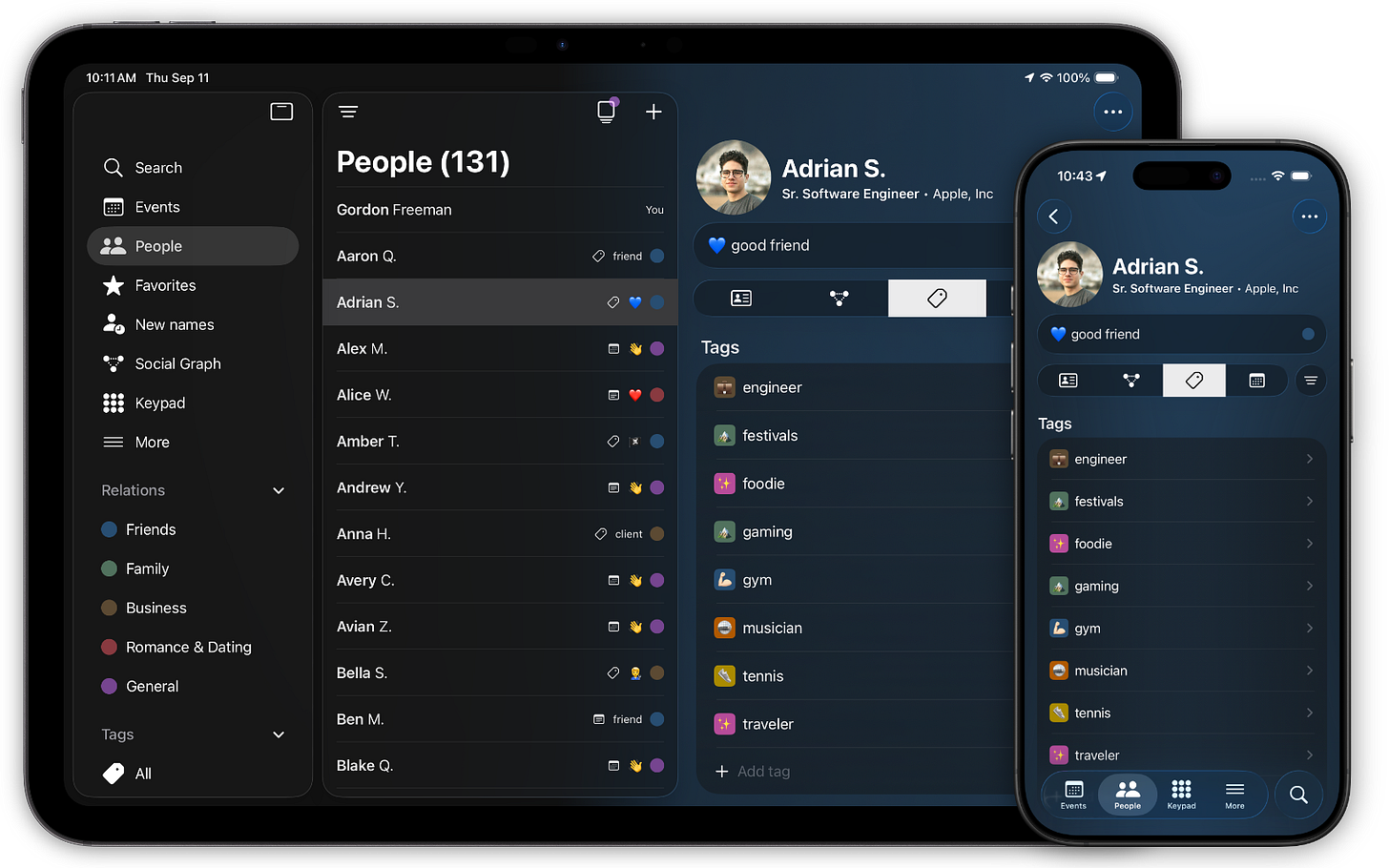 Our most requested feature by far, tags bring a whole dimension to organizing your contacts. Quickly tag someone via the First Met Notes field, browse your tagged contacts on the new Tagged Sub-Tab, and get specific with Search Tag Filters. 🔎